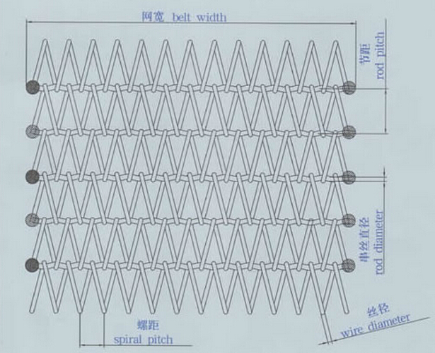 螺距:網(wǎng)條螺旋環(huán)中近兩個(gè)環(huán)絲的中心距。
