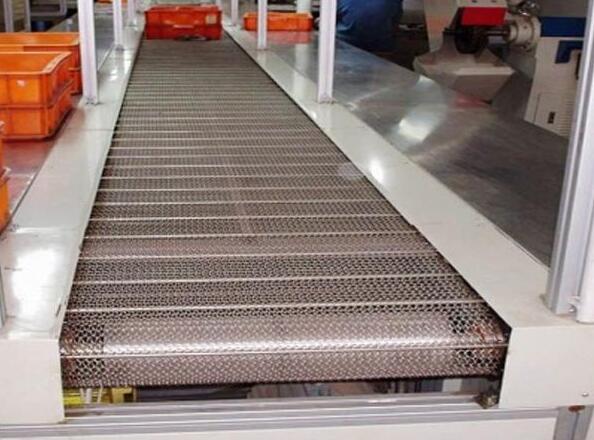 咨詢電話:15610103266食品加工生產(chǎn)線通常使用兩種類(lèi)型的金屬網(wǎng)帶,一種是鋼絲編織鏈網(wǎng)帶,另一種是不銹鋼鏈板輸送皮帶。