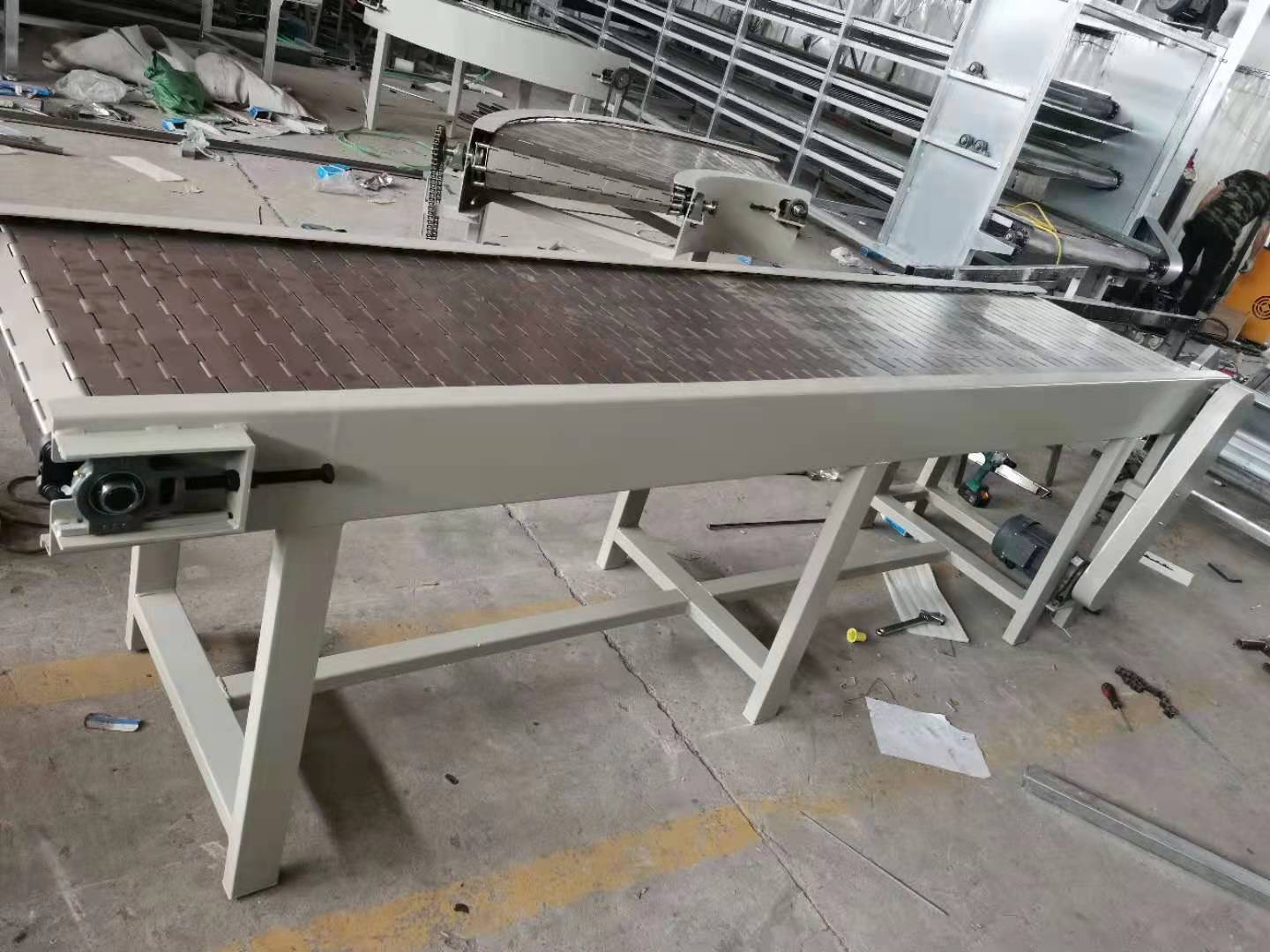 咨詢電話:15610103266日化鏈板輸送機(jī)生產(chǎn)線是現(xiàn)代工業(yè)生產(chǎn)中的一條統(tǒng)一的自動(dòng)化流水線輸送設(shè)備,可采用多臺(tái)連續(xù)輸送物料。具有操作靈活,生產(chǎn)效率高特性。一般來(lái)說(shuō),鏈板輸送機(jī)傳動(dòng)部件的結(jié)構(gòu)包括使用鏈輪傳動(dòng),它通過(guò)鏈輪與不銹鋼鏈的嚙合運(yùn)動(dòng)形成高速傳動(dòng)比。