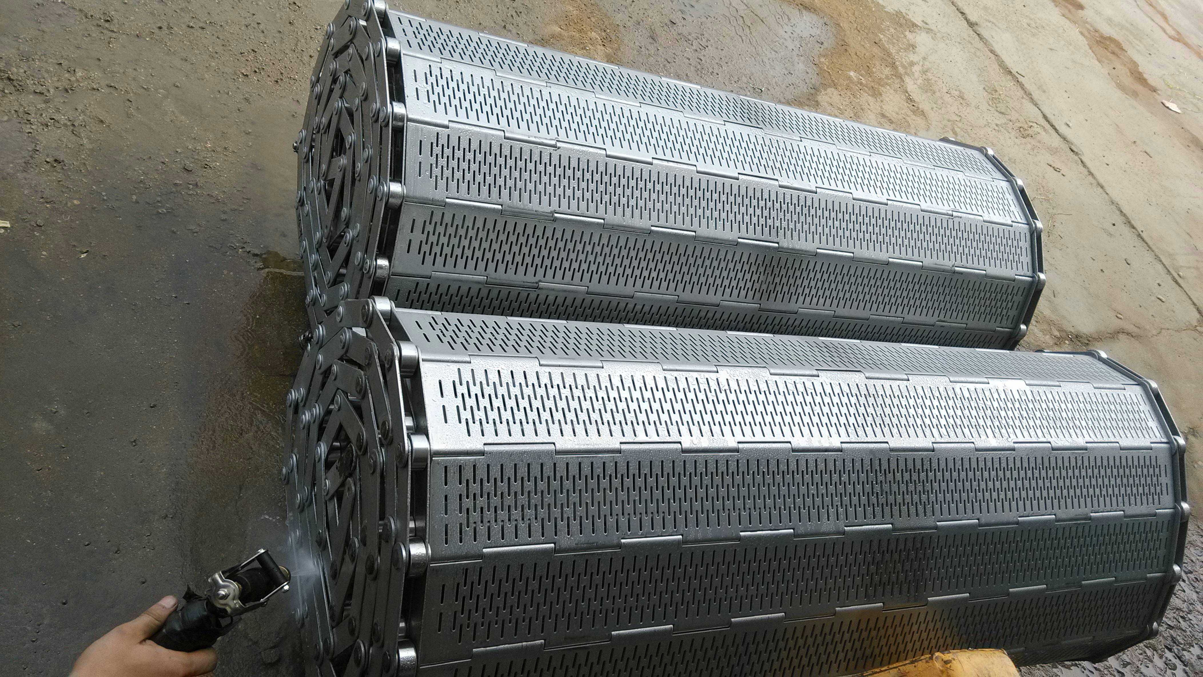 不銹鋼鏈板非常堅固,由不銹鋼鏈條驅(qū)動,采用不銹鋼板材生產(chǎn),適合用于輸送細(xì)小的高密度物件,輸送過程中運轉(zhuǎn)平穩(wěn),安裝更換方便,使用壽命較長。用于中等和大負(fù)荷輸送,鋼板彎曲形成合葉,使用支軸將合葉和鏈條串在一起,兩端的鏈條可以使用開口銷或者墊圈來固定,使用開口銷方便拆卸,維護(hù)方便。